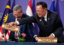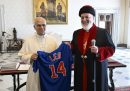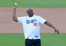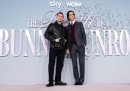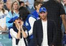 Alcune delle fotografie di questa settimana sono state scattate all’AFI Fest di Los Angeles, un importante festival di cinema organizzato dall’American Film Institute, che si è concluso domenica. C’erano Hugh Jackman e Kate Hudson per presentare il loro film Song Sung Blue, Ben Foster e Sydney Sweeney per Christy, e Russell Crowe con Rami Malek per Nuremberg. Sempre a Los Angeles c’è stata una lunghissima finale di baseball, cui hanno assistito il principe Harry e la moglie Meghan Markle, mentre l’ex cestista Earvin “Magic” Johnson ha fatto il cosiddetto first pitch, il lancio cerimoniale che dà inizio alla partita. Elle Fanning era a Londra a promuovere il suo ultimo film, Predator: Badlands; poi un momento di nostalgia per i fan della serie tv The O.C. e infine il papa che viene trollato dal patriarca della Chiesa assira.
