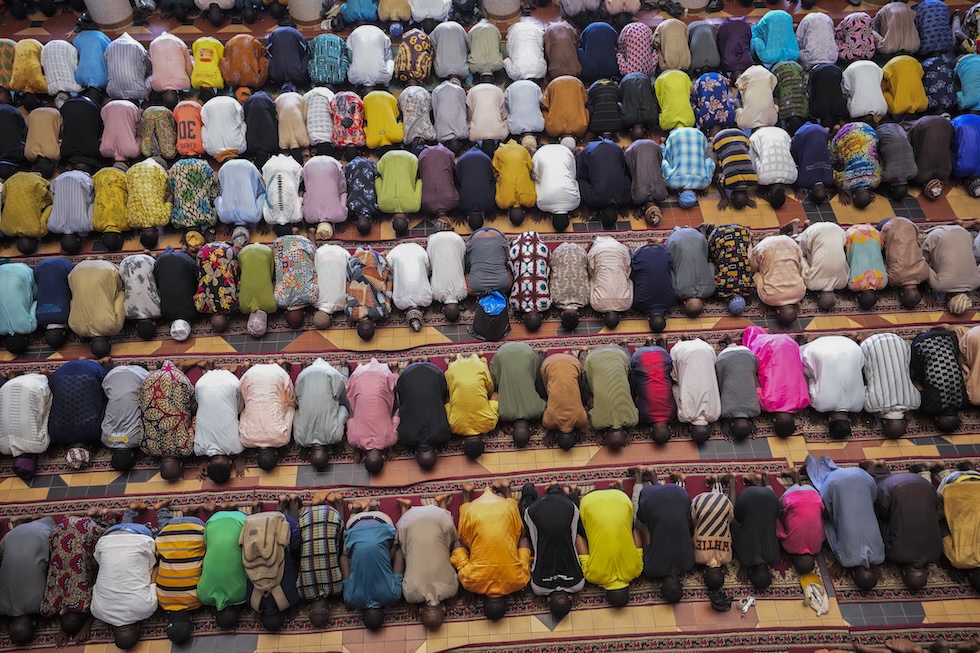Una preghiera nella moschea centrale di Lagos, in Nigeria, 15 marzo 2025 (AP Photo/Sunday Alamba)
