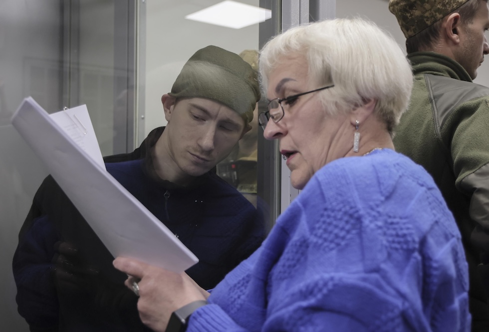 Kurashov ascolta la traduttrice durante l’udienza del 6 novembre 2025 (ANSA/EPA/OLEG MOVCHANIUK)