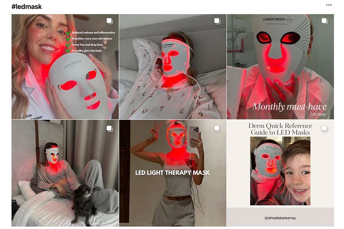 Una ricerca sulle maschere LED su Instagram porta a migliaia di risultati, molti promozionali (Instagram)