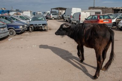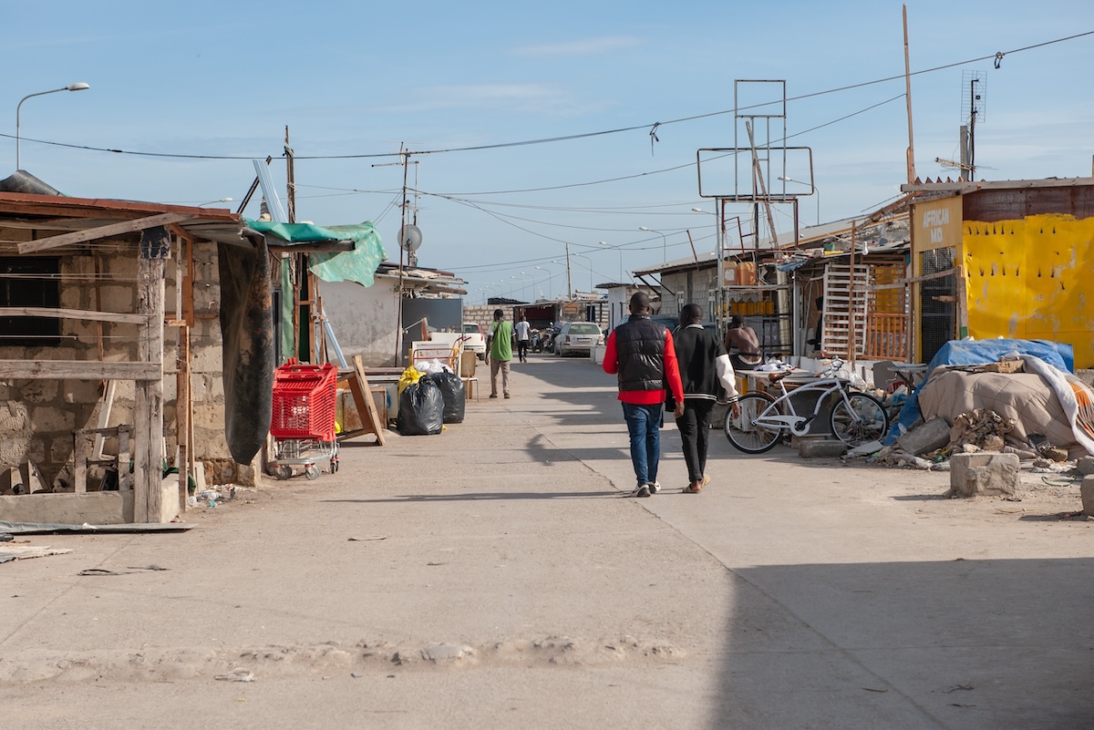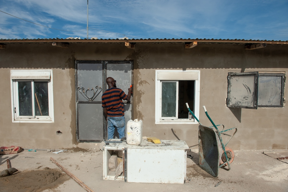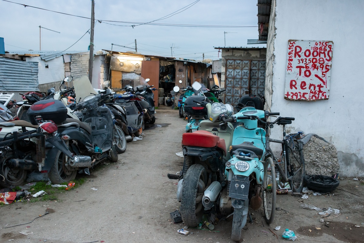 Per ora Mohamed ha costruito le basi del pianterreno e una scala che conduce a un solaio, da cui si può osservare tutta la baraccopoli. A questo ritmo per completarla gli serviranno un paio d’anni, dice. A poca distanza da casa sua si incontrano altre persone che stanno intonacando le mura di un’altra casa, quasi finita. Lamine, che viene dal Gambia, sta spingendo un carrello della spesa con dentro vestiti e coperte, l’ultimo passaggio prima del trasloco. Su un muro accanto si legge una scritta fatta con lo spray: rooms to rent, «stanze in affitto», seguita da un numero di cellulare.