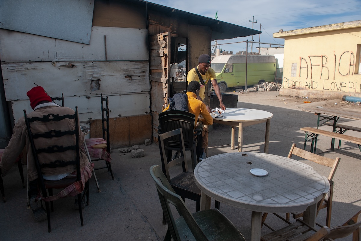 Koffi invece è arrivato dal Togo. Ripara televisioni ed elettrodomestici vari. Al bancone improvvisato del bar Coffee$drink invece c’è David, che arriva dal Gambia e dice di aver abbandonato una promettente carriera da «allenatore di calcio» per venire a Borgo Mezzanone. Ogni giorno dalle 4 del mattino prepara i caffè «per le persone che vanno a faticà» nelle campagne e poi, man mano che rientrano, fa loro da mangiare. Come le osterie di paese di una volta.