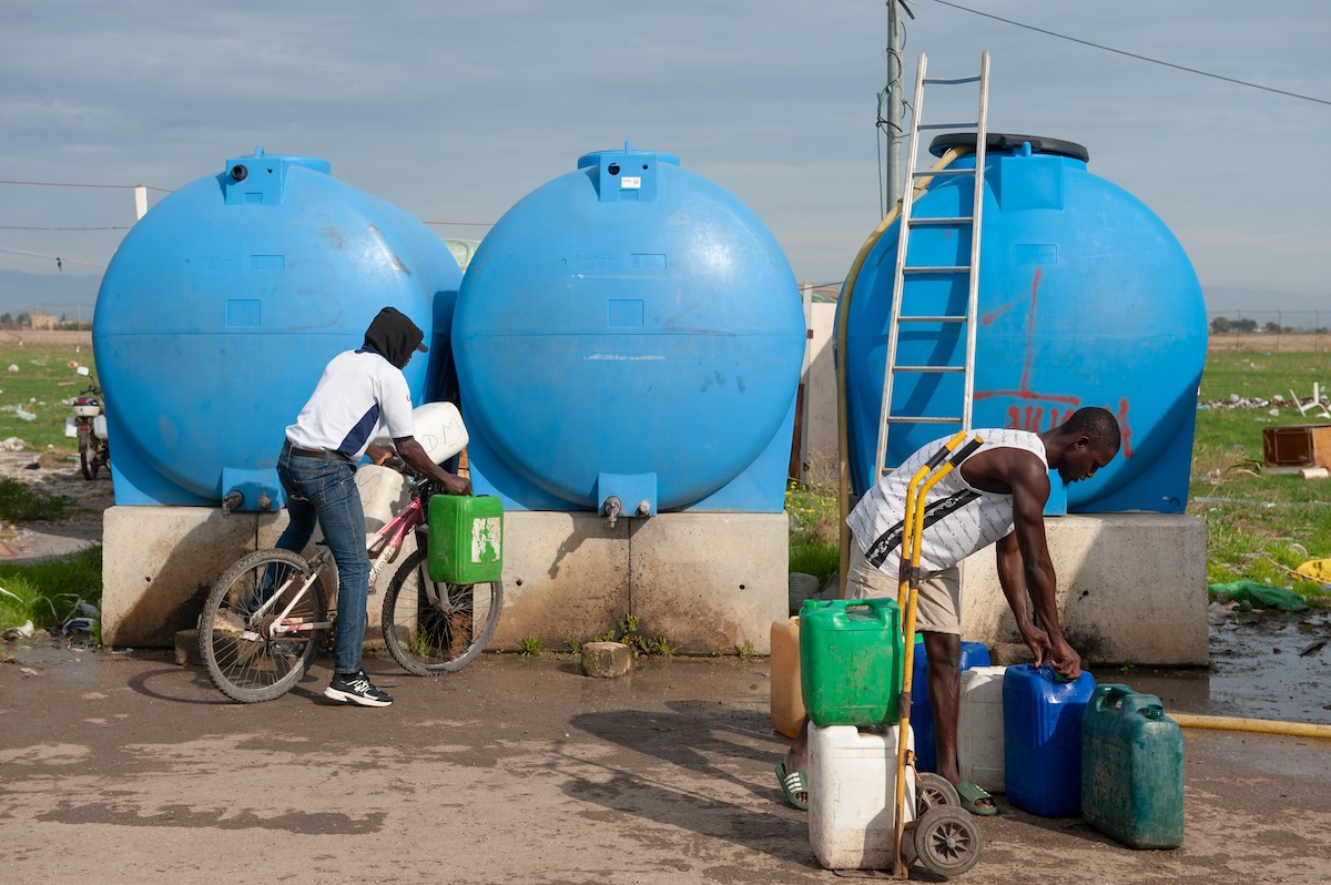Le cisterne dell’acqua che vengono riempite due volte a settimana (Andrea Sabbadini per il Post)