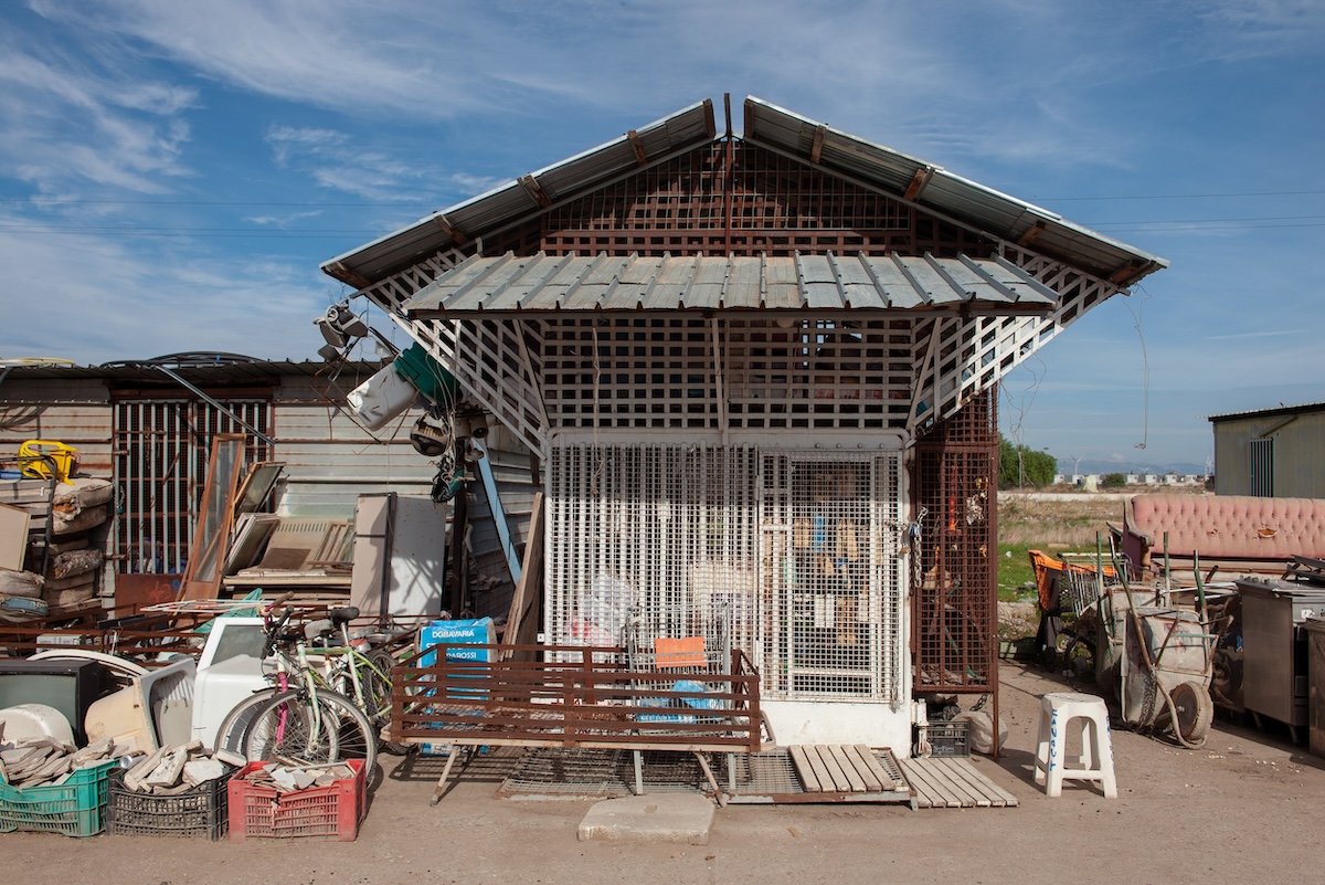 Un deposito di materiali vari nella baraccopoli di Borgo Mezzanone (Andrea Sabbadini per il Post)