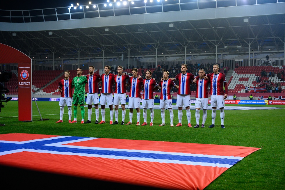 La nazionale norvegese prima della partita vinta 5-0 contro Israele (Sebastian Frej/MB Media/Getty Images)