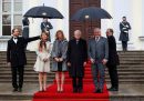Domenica a Los Angeles si è svolta la cerimonia di premiazione dei Governors Awards, una sorta di “Oscar onorari” assegnati dall’Academy, l’associazione che assegna gli Oscar veri e propri. Tom Cruise ne ha vinto uno e in una delle fotografie della settimana mostra sorridente la sua statuetta insieme a un altro dei vincitori, lo scenografo afroamericano Wynn Thomas. Naturalmente erano presenti diverse altre celebrità di Hollywood, come Jennifer Lopez ed Elle Fanning. Sempre a Los Angeles ci sono stati anche gli ELLE Women in Hollywood 2025, premi che ogni anno la rivista ELLE assegna alle “donne più influenti del cinema americano” e, tra le altre, sono state premiate Emily Blunt, Jennifer Aniston, Chase Infiniti e Renate Reinsve. Poi la regista Chloé Zhao che sistema la cravatta di Steven Spielberg, Re Carlo III che taglia una torta a forma di castello e infine Renée Zellweger con la scrittrice Helen Fielding, creatrice di Bridget Jones, davanti a una statua del personaggio, appena inaugurata a Leicester Square, a Londra.