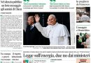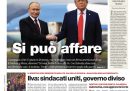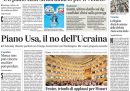 Il piano per arrivare a una pace fra Russia e Ucraina preparato da Stati Uniti e Russia che contiene però condizioni considerate inaccettabili dall’Ucraina e dall’Unione Europea è la notizia principale sulla maggior parte dei giornali di oggi. Le altre notizie più importanti sulle prime pagine sono le possibili modifiche al testo della legge di bilancio in discussione in parlamento, le dimissioni del segretario generale del Garante per la protezione dei dati personali, il decreto approvato dal governo per garantire la produzione dell’ex ILVA, il rinvio a giudizio per falso in bilancio del presidente del Napoli De Laurentiis, e ancora le tensioni fra Fratelli d’Italia e la presidenza della Repubblica. I giornali sportivi commentano il sorteggio degli spareggi per qualificarsi ai prossimi Mondiali maschili di calcio, considerato positivo per l’Italia, che giocherà con l’Irlanda del Nord ed eventualmente con la vincente fra Galles e Bosnia ed Erzegovina.