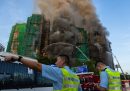 In molti altri paesi asiatici le impalcature per i lavori edili vengono spesso fatte con canne di bambù avvolte di teli di plastica, e non con tubi di acciaio come in Europa. Il bambù è elastico e resistente al vento, e i ponteggi così realizzati sono molto solidi, nonostante l’apparenza precaria. Per la loro costruzione non vengono usati chiodi né viti ma le canne vengono legate insieme dagli operai con migliaia di striscioline di plastica. I regolamenti cittadini prevedono che i teli che li avvolgono debbano essere resistenti alle fiamme, ma non sempre vengono rispettati, creando un grosso rischio di incendi: in passato c’erano già stati casi simili a quello di mercoledì. Il governo cittadino ha quindi deciso mesi fa di eliminarne gradualmente l’uso.