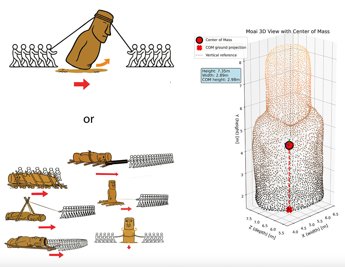 Tecniche di trasporto dei moai a confronto e studio del baricentro dei monoliti (C. Lipo e T. Hunt, Journal of Archaeological Science, 2025)