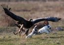 Ogni anno alla Casa Bianca, in occasione del Ringraziamento, si svolge la cerimonia in cui il presidente degli Stati Uniti concede la grazia a uno o più tacchini. Un tempo sarebbero stati destinati al pranzo festivo, ma dagli anni Settanta la tradizione prevede che vengano “graziati” ufficialmente. In una foto di questa raccolta i due tacchini di quest’anno, Waddle e Gobble, si mettono comodi nella loro stanza d’albergo, il giorno prima della cerimonia. Ci sono poi un’aquila che insegue un coniglio; il pony delle Shetland caporale Cruachan IV, mascotte ufficiale del Royal Regiment of Scotland, il reggimento della fanteria scozzese; e un gatto nel cortile della Moschea Blu di Istanbul, in Turchia, nei giorni della visita del papa.