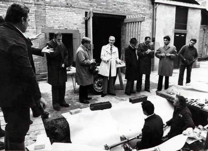 Andrea Comoretto, al centro, al lavoro (per gentile concessione della Casa Editrice el squero)
