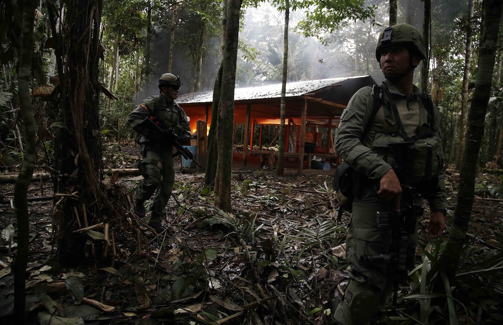 L’operazione dell’esercito contro un laboratorio e un accampamento di guerriglieri nel 2016 nello stato di Guaviare, in Colombia (AP Photo/Fernando Vergara)