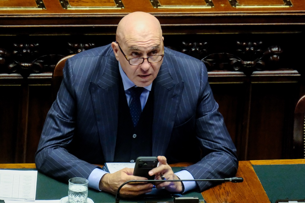 Il ministro della Difesa Guido Crosetto alla Camera, il 12 novembre 2025 (Mauro Scrobogna/LaPresse)