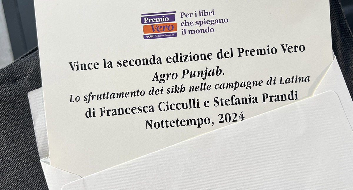 Agro Punjab di Francesca Cicculli e Stefania Prandi è il libro vincitore della seconda edizione del Premio Vero, creato dal Post e dalla Fondazione Peccioliper per promuovere il lavoro giornalistico e divulgativo sulla realtà attraverso i libri. Il libro, pubblicato dall’editore Nottetempo, è stato quello preferito dai 250 abbonati e abbonate del Post (più il Gruppo di lettura non fiction di Peccioli) che hanno letto e votato i quattro libri finalisti, a loro volta scelti prima dell’estate da una giuria di venti librerie indipendenti.