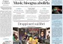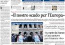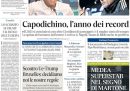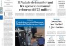Non ci sono grandi notizie sulle prime pagine dei giornali di oggi: quella con cui aprono i principali quotidiani sono le dichiarazioni di Stati Uniti e Unione Europea dopo le critiche rivolte dai primi alla seconda nella Strategia per la sicurezza nazionale, il documento programmatico su politica estera e sicurezza; l’altra notizia molto presente sono le proteste per la presenza della casa editrice di ispirazione fascista Passaggio al bosco a “Più libri più liberi”, la fiera dell’editoria indipendente che si sta svolgendo a Roma. Per il resto i giornali hanno in prima pagina cose diverse: il Corriere della Sera la vendita di armi che gli Stati Uniti hanno approvato per l’Italia, Repubblica il buco nello scudo protettivo costruito sopra alla ex centrale di Chernobyl, in Ucraina; La Stampa l’inizio di Atreju, la festa giovanile della destra italiana.