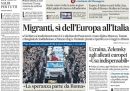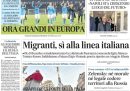 Ci sono notizie diverse in apertura sui giornali di oggi, ma la maggior parte si occupa delle trattative per far finire la guerra fra Russia e Ucraina, con il disimpegno degli Stati Uniti, l’incontro a Londra fra il presidente ucraino Zelensky, quello francese Macron, il primo ministro del Regno Unito Starmer e il cancelliere tedesco Merz, e quelli previsti per oggi a Roma per Zelensky con papa Leone XIV e con la presidente del Consiglio Meloni. Qualche giornale titola invece sull’approvazione da parte del Consiglio dell’Unione Europea di una lista di paesi di provenienza delle persone richiedenti asilo considerati “sicuri”, il Sole 24 Ore si occupa dei dati positivi delle esportazioni della Cina nonostante i dazi degli Stati Uniti, e i giornali sportivi commentano la vittoria del Milan, che raggiunge il Napoli in testa alla classifica della Serie A maschile di calcio.