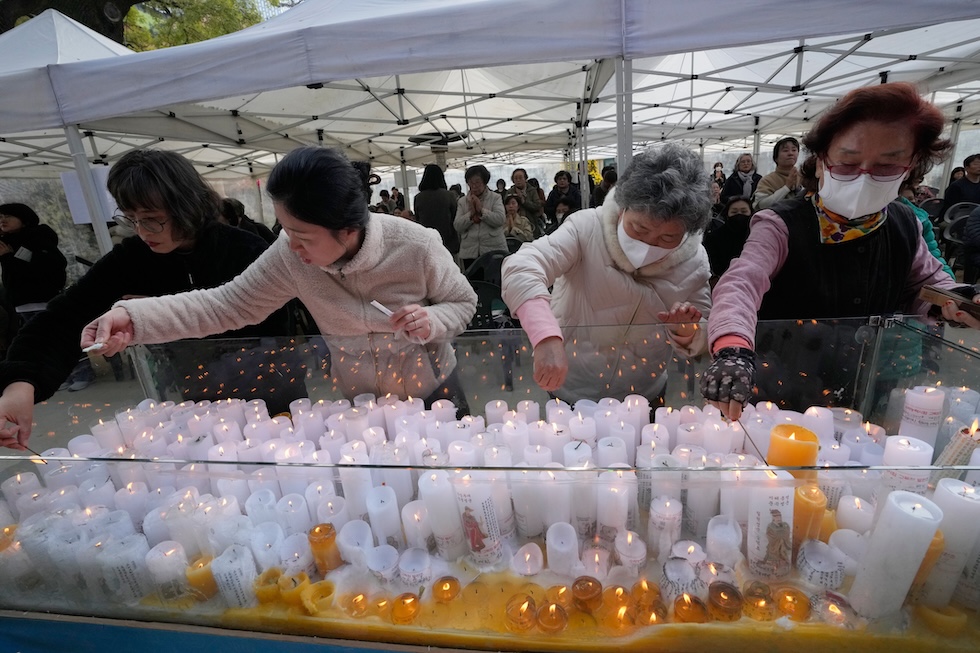 Fedeli buddhisti accendono ceri per augurare il successo agli studenti che si sottopongono al Suneung (AP Photo/Ahn Young-joon)