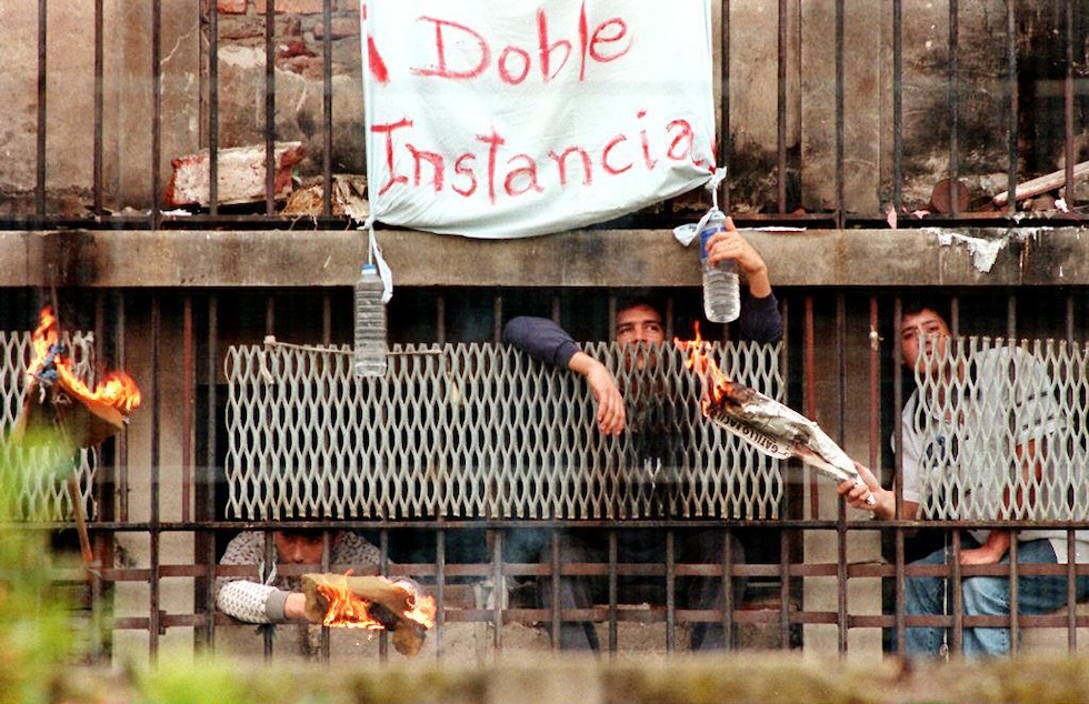Una protesta nel carcere di Devoto nel 1996 (Daniel García/ANSA)