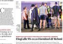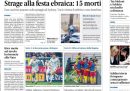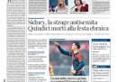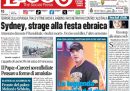 Su tutti i giornali di oggi la notizia in apertura è la strage sulla spiaggia di Bondi Beach in Australia, dove due uomini hanno sparato contro persone della comunità ebraica locale che stavano celebrando il primo giorno della festività ebraica di Hanukkah, uccidendo quindici persone. Il Fatto e la Verità titolano invece sulla guerra fra Russia e Ucraina, Libero sul discorso della presidente del Consiglio Meloni in chiusura di Atreju, la festa di Fratelli d’Italia, mentre i giornali sportivi commentano i risultati di ieri nella Serie A maschile di calcio, con l’Inter che torna in testa alla classifica superando Milan e Napoli.