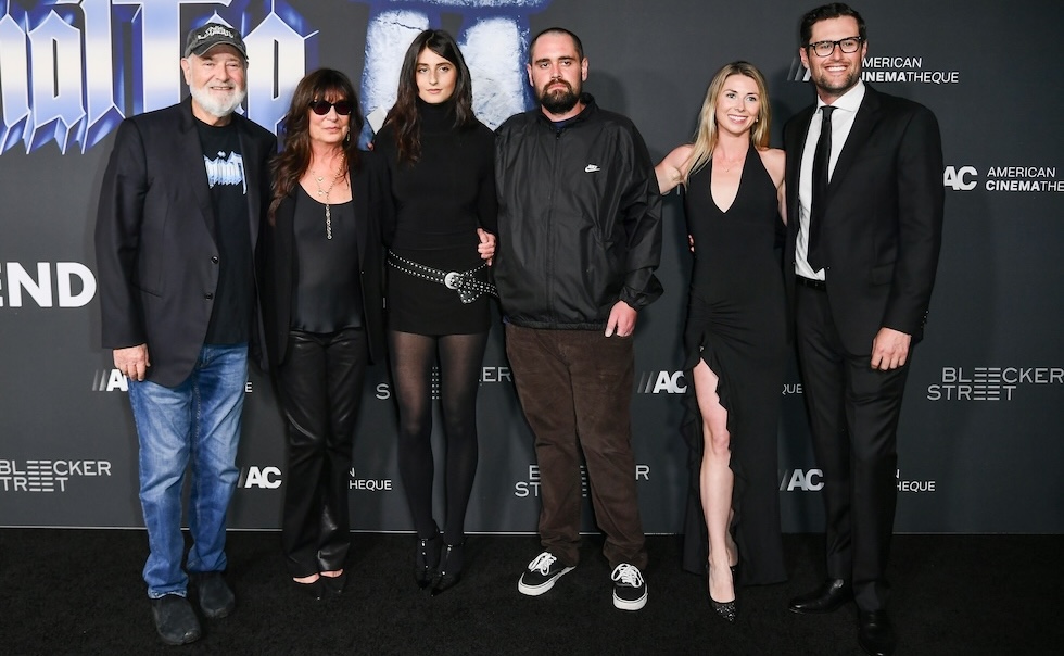 Rob Reiner, Michele Singer Reiner, Romy Reiner, Nick Reiner, Jake Reiner e la compagna Maria Gilfillan e alla première di “Spinal Tap II: The End Continues” a Los Angeles, 9 settembre 2025 (Richard Shotwell/Invision/AP)