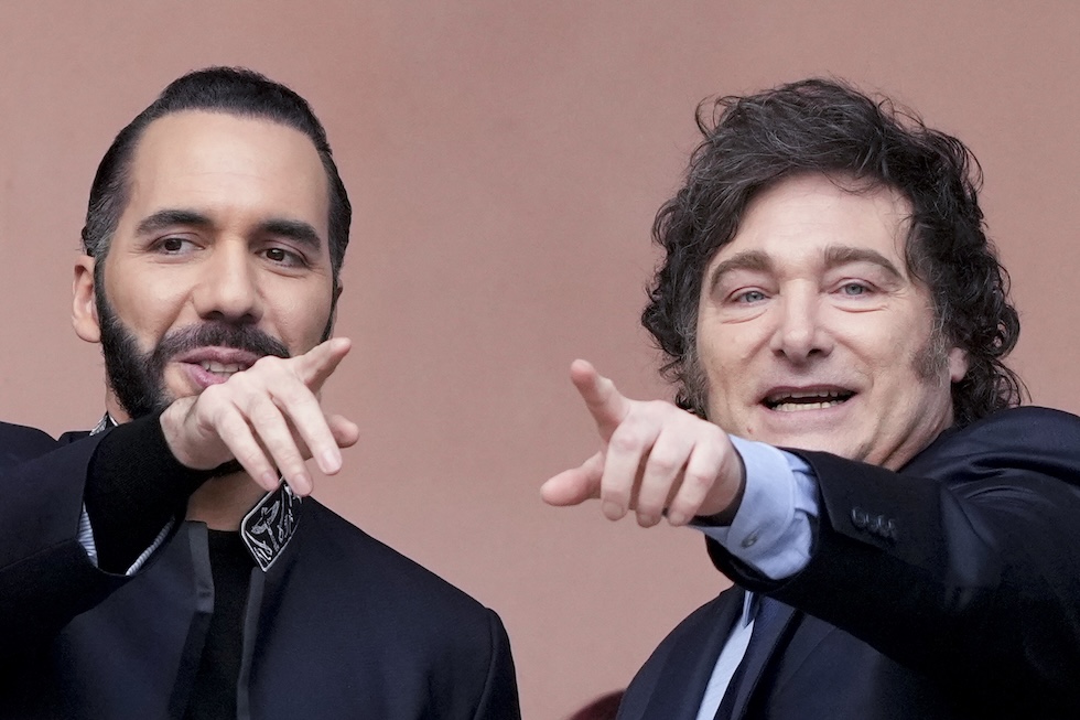 I presidenti di El Salvador e Argentina Nayib Bukele e Javier Milei a Buenos Aires nel settembre del 2024 (AP Photo/Natacha Pisarenko)