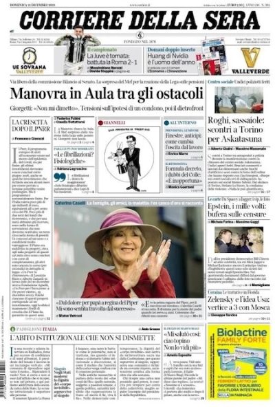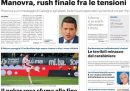I principali quotidiani nazionali oggi aprono tutti sulla manovra, perché il disegno di legge è stato approvato in Commissione bilancio, dopo il caos degli ultimi giorni, altre modifiche e tensioni nella maggioranza. Su molte prime pagine si fa anche cenno al corteo di ieri a Torino contro lo sgombero del centro sociale Askatasuna, durante il quale ci sono stati scontri tra la polizia e alcuni manifestanti. I tre quotidiani sportivi hanno avuto tutti la stessa idea per illustrare la vittoria di ieri della Juventus contro la Roma.