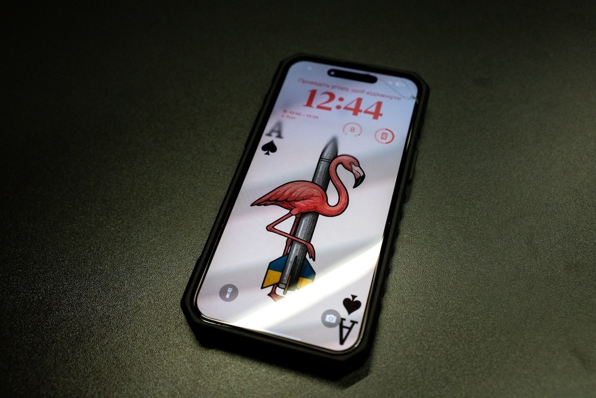 Questo espediente retorico del “siamo noi le carte” fa capolino qui e là nell’ufficio. Sui sacchetti di carta c’è scritto in latino “quis nisi nos?”, cioè “chi se non noi?”; il salvaschermo sul telefono di lei è una carta da gioco, un asso di picche, con un fenicottero e un missile. Di solito quando si parla di armi si parla soprattutto delle prestazioni, come il carico esplosivo e quanto riescono a volare. Fire Point sottolinea altre caratteristiche, a partire dal basso costo, che è fondamentale perché l’Ucraina ha un budget di guerra ridotto. I droni FP-1 ora costano circa 42mila euro a unità, un terzo del costo dei droni Shahed russi.