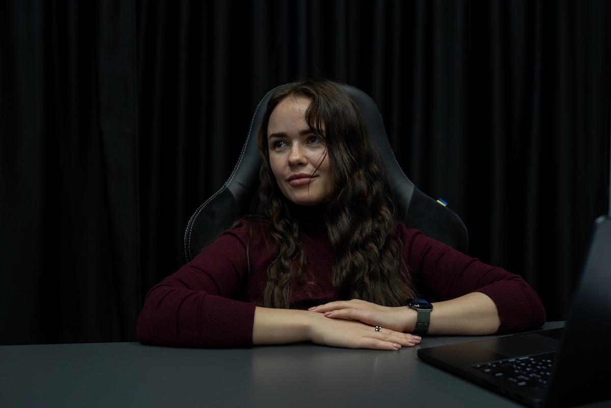 Iryna Terekh, 33 anni, fondatrice e progettista di Fire Point, durante l’intervista (Alex Babenko per il Post)
