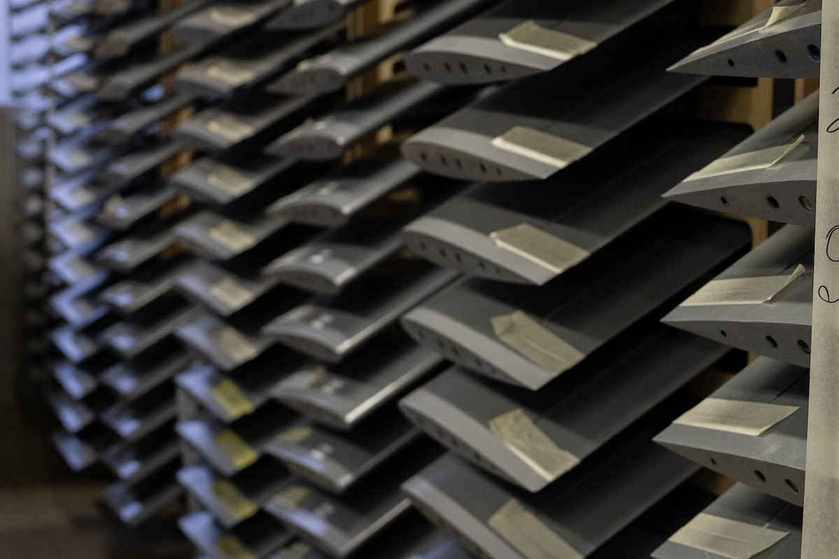 Il processo di asciugatura delle ali dei droni a lungo raggio ucraini in uno stabilimento di Fire Point (Alex Babenko per il Post)