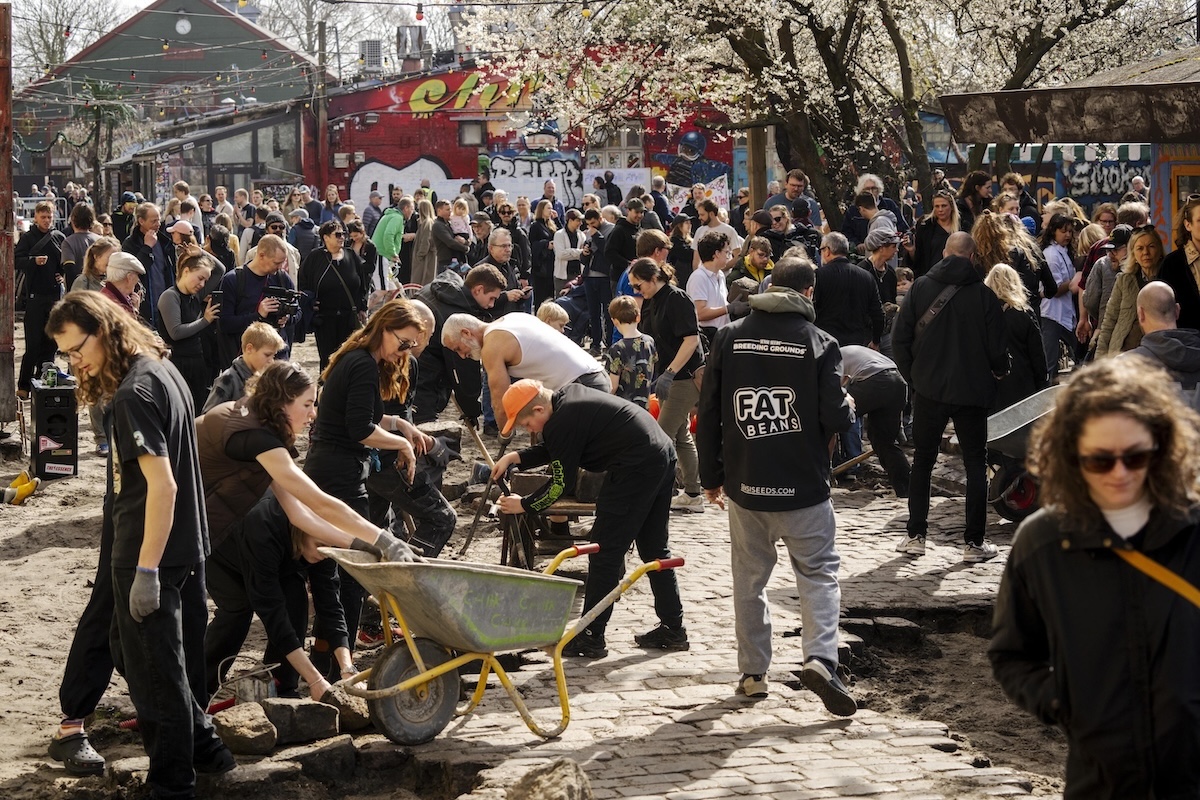 Residenti di Christiania durante i lavori per la chiusura di Pusher Street, 6 aprile 2024 (EPA/IDA MARIE ODGAARD/ansa)