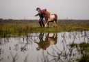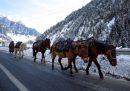 La maggior parte delle fotografie di animali di questa settimana è ambientata in paesaggi innevati, anche a causa della tempesta Goretti che ha portato nevicate copiose su diversi paesi europei. Ci sono un piccolo uccello su un muretto coperto di neve lungo la Senna, a Parigi; un elefante che mangia i resti di un albero di Natale allo zoo di Berlino; e un cane portato a passeggio sotto la neve ad Amsterdam. Spostandoci fuori dall’Europa, troviamo cavalli al pascolo tra le montagne innevate del Kashmir indiano e macachi giapponesi che si scaldano nell’acqua delle sorgenti termali del parco delle scimmie di Jigokudani. Poi qualche fotografia dall’annuale censimento degli animali dello zoo di Londra e, per finire, un paesaggio molto diverso dai precedenti: dromedari al Rally Dakar, nel paesaggio arido e desertico dell’Arabia Saudita.