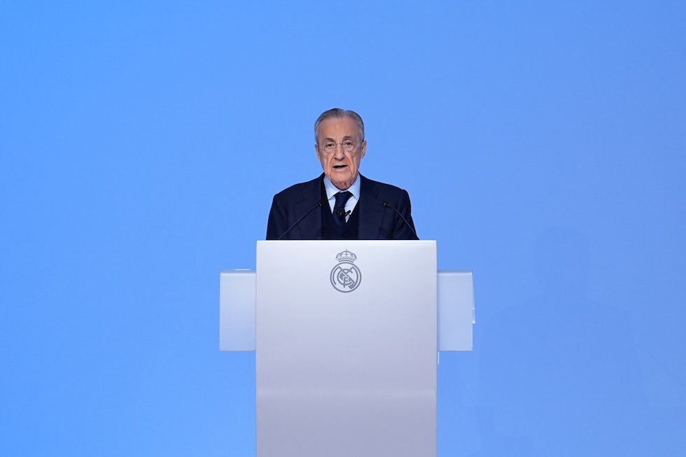 Florentino Pérez durante l’Assemblea generale dei soci del Real Madrid, 23 novembre 2025 (Dennis Agyeman / AFP7 via Getty Images)