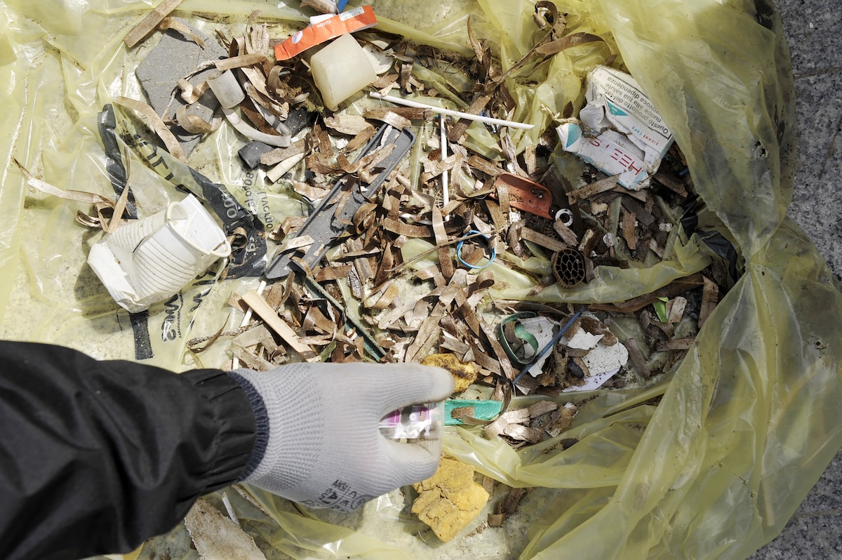 Residui e frammenti di materiale plastico trovati su una spiaggia vicino a Livorno nel 2023 (Laura Lezza/Getty Images)