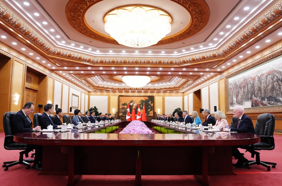 L’incontro tra i rappresentanti di Cina e Canada a Pechino, il 16 gennaio 2026 (Sean Kilpatrick/The Canadian Press via AP)
