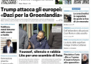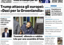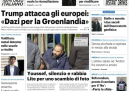 Stamattina gran parte dei quotidiani cartacei apre con l’annuncio di nuovi dazi statunitensi sui paesi europei che hanno inviato i propri soldati in Groenlandia, come misura di deterrenza per le mire espansionistiche di Donald Trump. Trovano spazio anche le proteste in Groenlandia proprio contro le minacce di Trump, la morte di Rocco Commisso, presidente e proprietario della Fiorentina, e vari casi di cronaca italiana fra cui l’omicidio avvenuto in una scuola a La Spezia. Sui quotidiani sportivi è molto presente la sconfitta della Juventus contro il Cagliari, nell’anticipo di Serie A di sabato sera.
