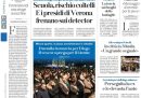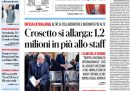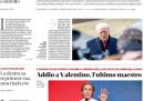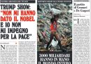 Le aperture dei giornali di oggi si dividono fra tre notizie principali: molti si occupano delle tensioni fra Stati Uniti e Unione Europea sull’intenzione del presidente degli Stati Uniti Trump di annettere la Groenlandia e sulle minacce di dazi reciproci che ieri hanno provocato una giornata difficile per le borse europee; a questa notizia molti giornali associano la lettera inviata da Trump al primo ministro norvegese per lamentarsi della mancata assegnazione del Nobel per la Pace. Qualche giornale apre invece sulla morte dello stilista Valentino Garavani, altri si occupano dell’incidente ferroviario in Spagna in cui sono morte almeno 40 persone e delle indagini sulle possibili cause, mentre il Manifesto titola sulla situazione a Minneapolis dopo l’uccisione di Renee Nicole Good da parte di un agente dell’ICE. I giornali sportivi presentano le partite di stasera di Inter e Napoli per la Champions League maschile di calcio.