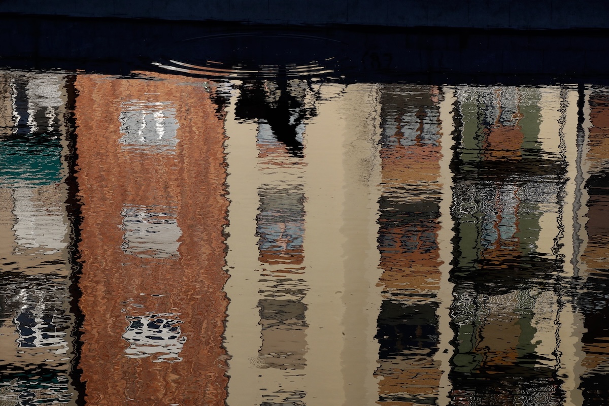 Un condominio riflesso nell’acqua dei Navigli, a Milano, nel 2020 (AP Photo/Luca Bruno)