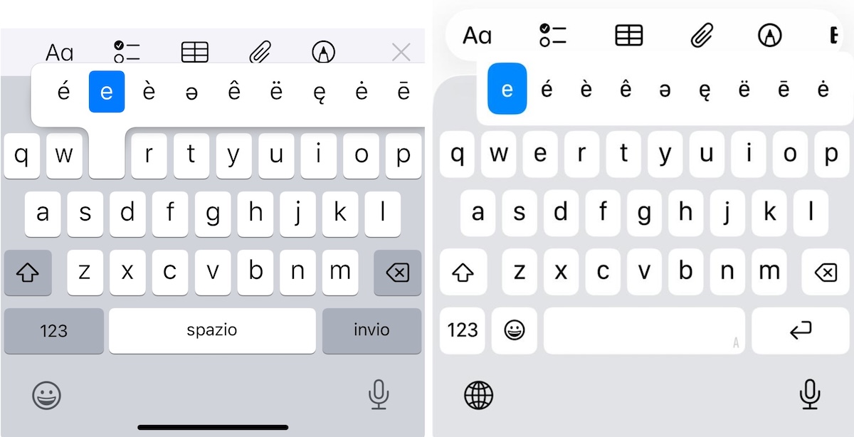 La nuova tastiera di iOS 26 ha infine portato a qualche complicazione in diverse lingue che utilizzano spesso gli accenti, a differenza dell’inglese dove sono più rari. Nella tastiera italiana, per esempio, la lista delle lettere accentate (cui si accede tenendo premuto il tasto della lettera da accentare) non mostra più una netta separazione tra l’accento grave (come in “caffè”) e quello acuto (come in “perché”). Le lettere accentate sono inoltre ordinate privilegiando l’accento acuto, molto meno ricorrente rispetto a quello grave soprattutto per l’uso di “è” per il verbo essere.