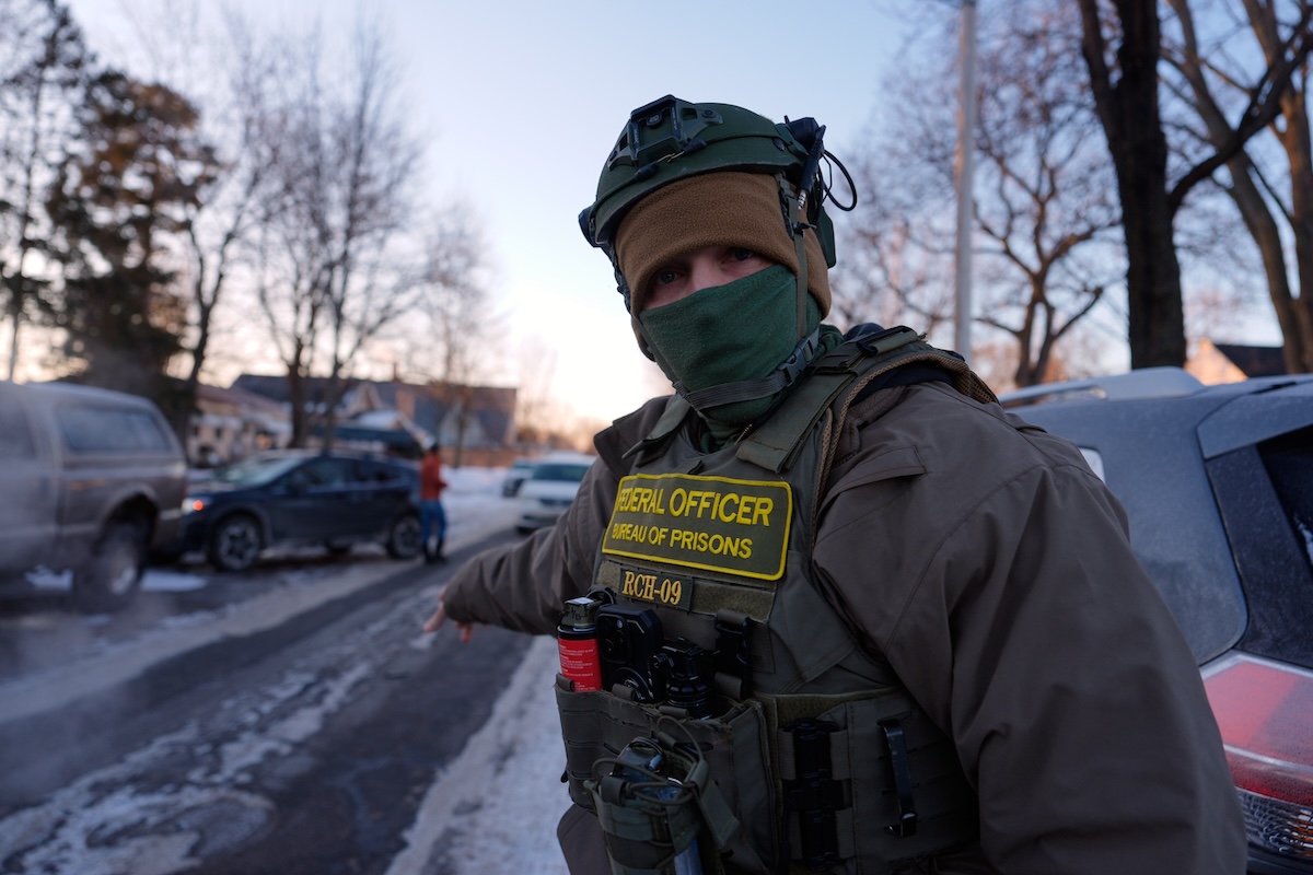 Un agente federale a Minneapolis, 28 gennaio 2026 (AP Photo/Julia Demaree Nikhinson)
