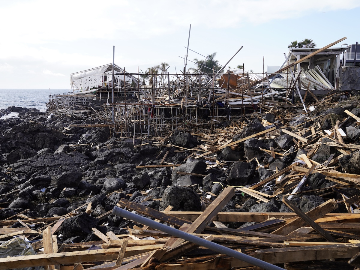 L’impeto dell’acqua ha distrutto decine di stabilimenti balneari, bar, ristoranti e parchi con i giochi per i bambini, divelto le scalette in pietra lavica costruite tra le scogliere, e piegato le recinzioni che chiudevano l’accesso alle spiagge in concessione. Ha rotto le protezioni dei porticcioli, affondando barche e pescherecci, e danneggiato la linea ferroviaria, che è stata sospesa.