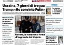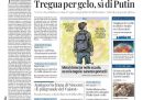 Sono due le notizie principali su cui aprono i giornali di oggi: l’annuncio del presidente degli Stati Uniti Trump, non confermato ancora dalla Russia, di una sospensione dei bombardamenti sulle città ucraine per una settimana in vista dei giorni di grande freddo previsti, in quella che quasi tutti i titoli definiscono la “tregua del gelo”, e la frana di Niscemi, con le discussioni fra i partiti su dove trovare i finanziamenti per gli aiuti alle zone colpite dal ciclone Harry. Il Manifesto e Avvenire titolano invece sulla conferma da parte dell’esercito israeliano del conteggio del ministero della Salute della Striscia di Gaza delle persone palestinesi uccise in due anni di guerra, più di settantamila.