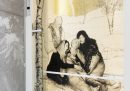 Al centro del suo studio questa sua urgenza si rivela nelle centinaia di opere archiviate dopo le mostre degli ultimi anni: si intravedono quadri, sculture, tavole di legno, rotoli di non si sa bene che materiale, qua e là vecchie lavagne incise. Mastrovito indica quasi di sfuggita tre tronchi – tronchi veri, di alberi veri – intarsiati al modo delle tarsie antiche, come se avere tre alberi in una stanza fosse del tutto normale. Da qualche parte ci sono scatole con decine di migliaia di disegni di Nysferatu, uno per ogni frame del film di animazione che ha realizzato nel 2017.