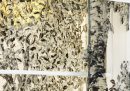 Il punto di partenza è sempre il disegno «che tira le fila e mette ordine su ogni cosa», anche nei suoi pensieri. Ma negli anni Mastrovito ha lavorato molto con la tecnica del collage e con il frottage, che consiste nello strofinare una matita o un pastello su un foglio appoggiato a una superficie in rilievo, in modo che la trama sottostante venga impressa sulla carta.