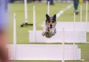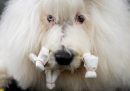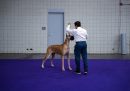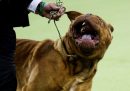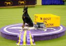 Quest’anno il Westminster Kennel Club Dog Show, la più importante mostra cinofila degli Stati Uniti, ha celebrato la sua 150esima edizione. L’evento si è svolto a New York e circa 3mila cani di decine di razze e varietà diverse sono stati valutati da una giuria di esperti che li ha giudicati in base alla loro bellezza e conformità agli standard della loro razza. La vincitrice del concorso è stata Penny, una dobermann di quattro anni, ma valeva la pena fotografare anche i tanti altri cani che hanno gareggiato, a cui è richiesta una notevole capacità di adattamento o sopportazione per esibirsi davanti a centinaia di persone, in mezzo a decine di altri cani, facendosi imbellettare e tenere per coda o orecchie. Sfogliando le foto dei giorni scorsi potreste imbattervi in razze meno note come i bedlington terrier o i kuvasz, ma anche nei nomi eccentrici con cui spesso vengono registrati i cani da esposizione: il cocker spaniel Winelight Wine Dancer, il pointer Aspyre Cat Got Ur Tongue, o la carlina Petunia Pugdashian.