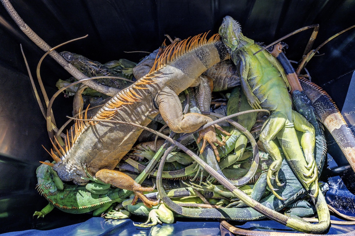 Blake Wilkins e Andrew Baron di Redline Iguana Removal, una società che si occupa di intervenire proprio sulle iguane e che ha sede lì vicino, sostengono di averne raccolte circa 2.500 nel giro di due giorni, e di non aver mai visto niente di simile.