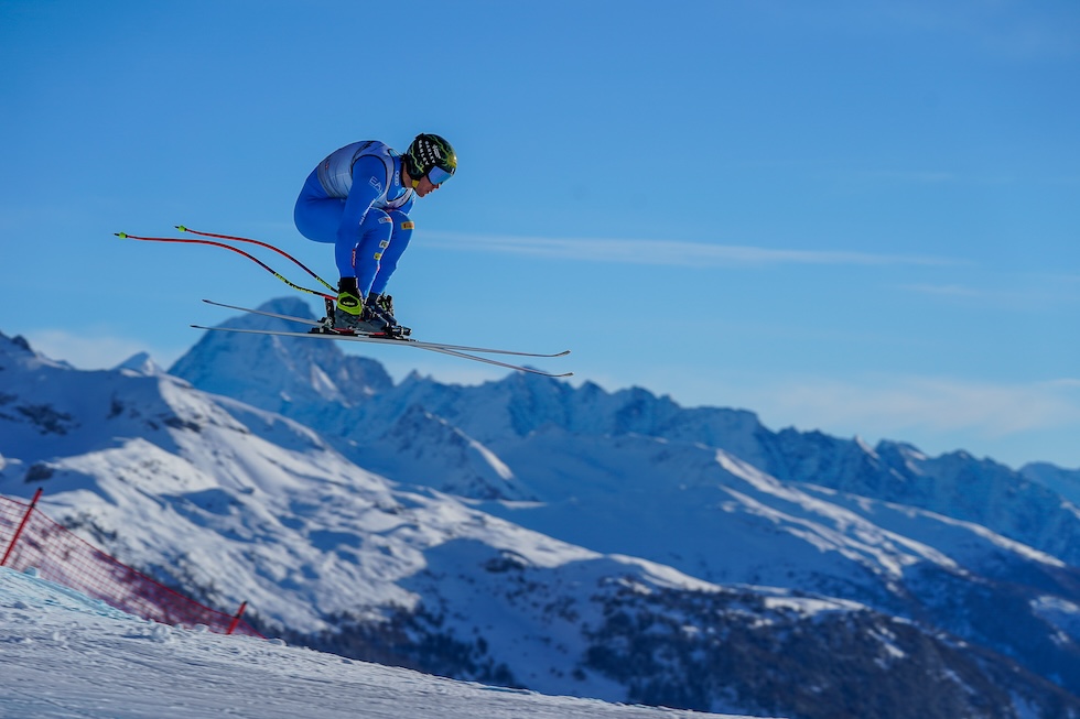 Giovanni Franzoni durante la discesa di Crans Montana (Michel Cottin/Agence Zoom/Getty Images)