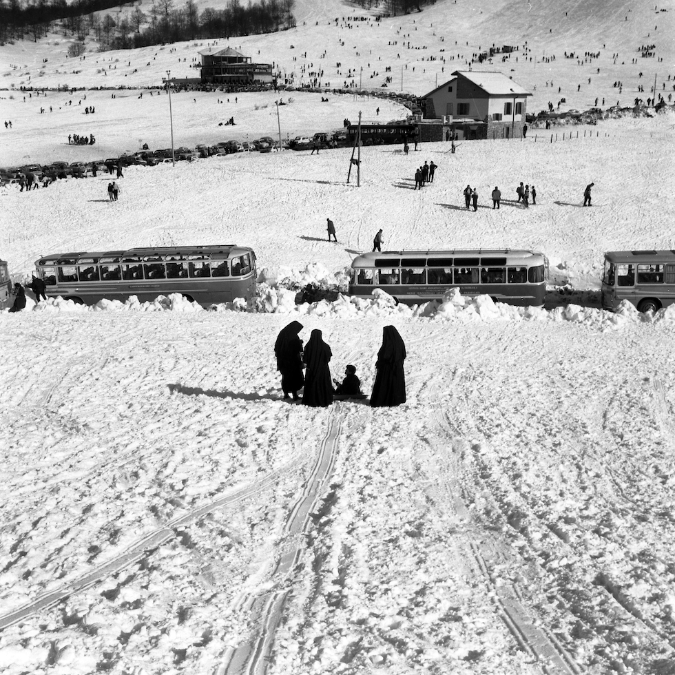 Un gruppo di suore alla stazione sciistica di Monte Livata, 18 gennaio 1965 (Ansa/Oldpix)
