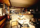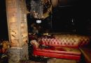 La stanza era rivestita di pannelli di legno, e dello stesso materiale era anche la maggior parte degli arredi: tavolini e panche che, insieme ai divani di pelle, poltrone e sgabelli, sono stati in gran parte carbonizzati.