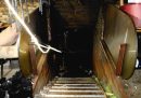 Il piano terra, con l’imbocco della scala sulla destra. In fondo si vede la porta che la sera dell’incendio era bloccata (procura di Sion via ANSA)