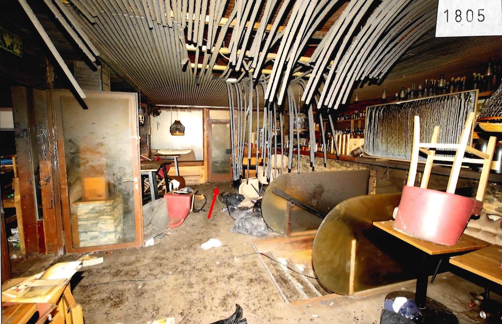 Su alcuni tavolini sono appoggiate le bottiglie, le lattine, i bicchieri e i secchielli del ghiaccio. Nelle foto si capisce anche quanto fosse stretta la scala che portava sopra, al piano terra, l’unica via di fuga; 34 persone sono morte proprio nella calca che si è creata ai piedi della scala durante l’incendio. Altri 6 corpi erano stati trovati vicino alla porta di servizio al piano terra, prima della veranda, che però la sera dell’incendio era chiusa. Nelle foto si vede il chiavistello, che fu poi forzato e aperto dai soccorritori. Un’altra persona è morta mentre era ricoverata in ospedale, un mese dopo l’incendio.